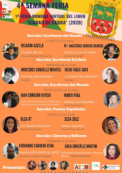 El día 8 de diciembre de 2020, participé en la 1ª Feria Virtual Mundial del Libro "Ciudad de Cabra", organizada por Arte Ahora, Asociación que preside Rafael Luna García.